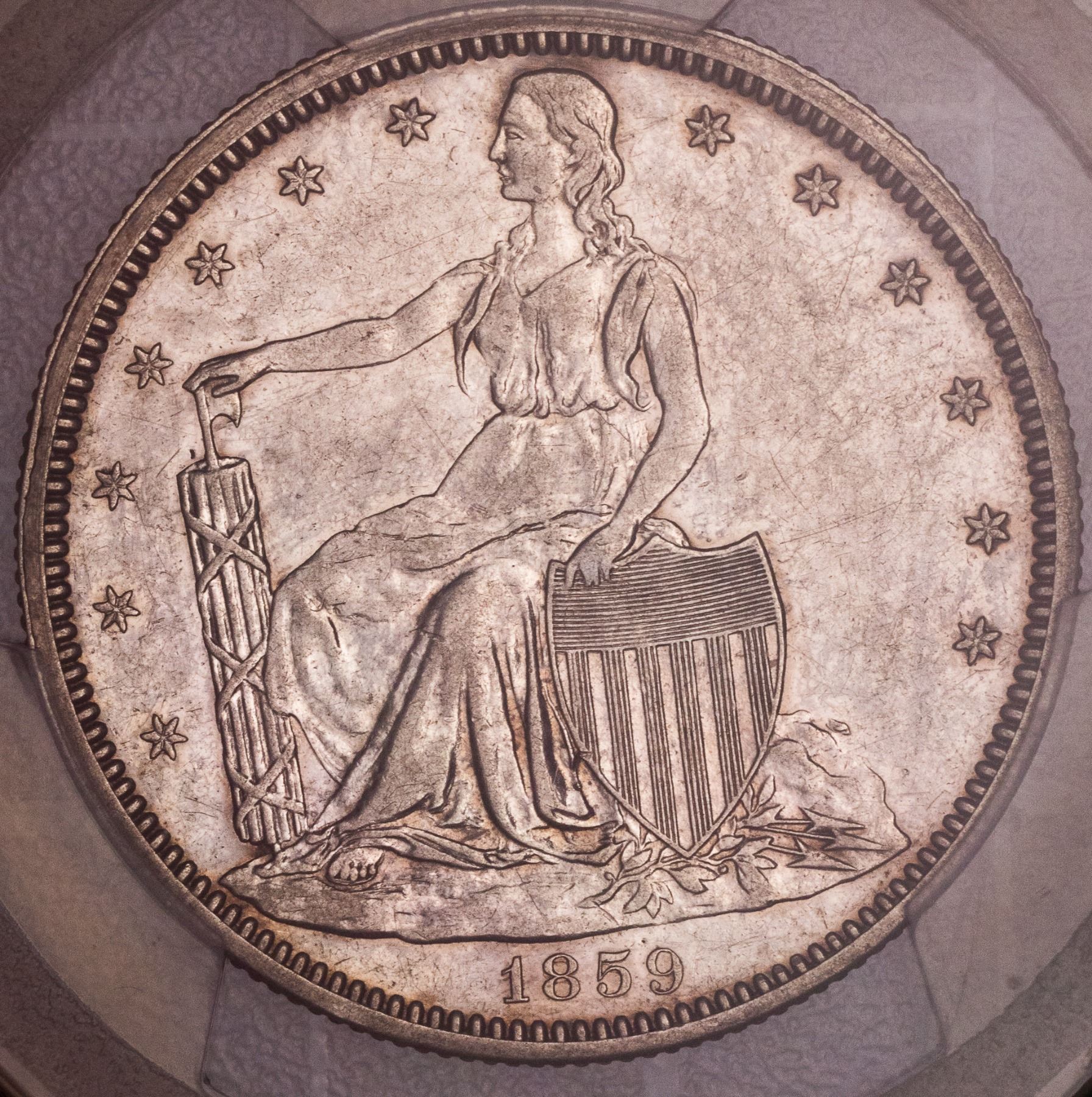 Paquet's seated liberty design. These were struck from two reverse dies.