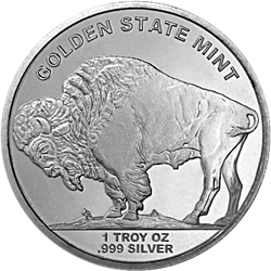 1 OZ SILVER ROUND BUFFALO GOLDEN STATE MINT