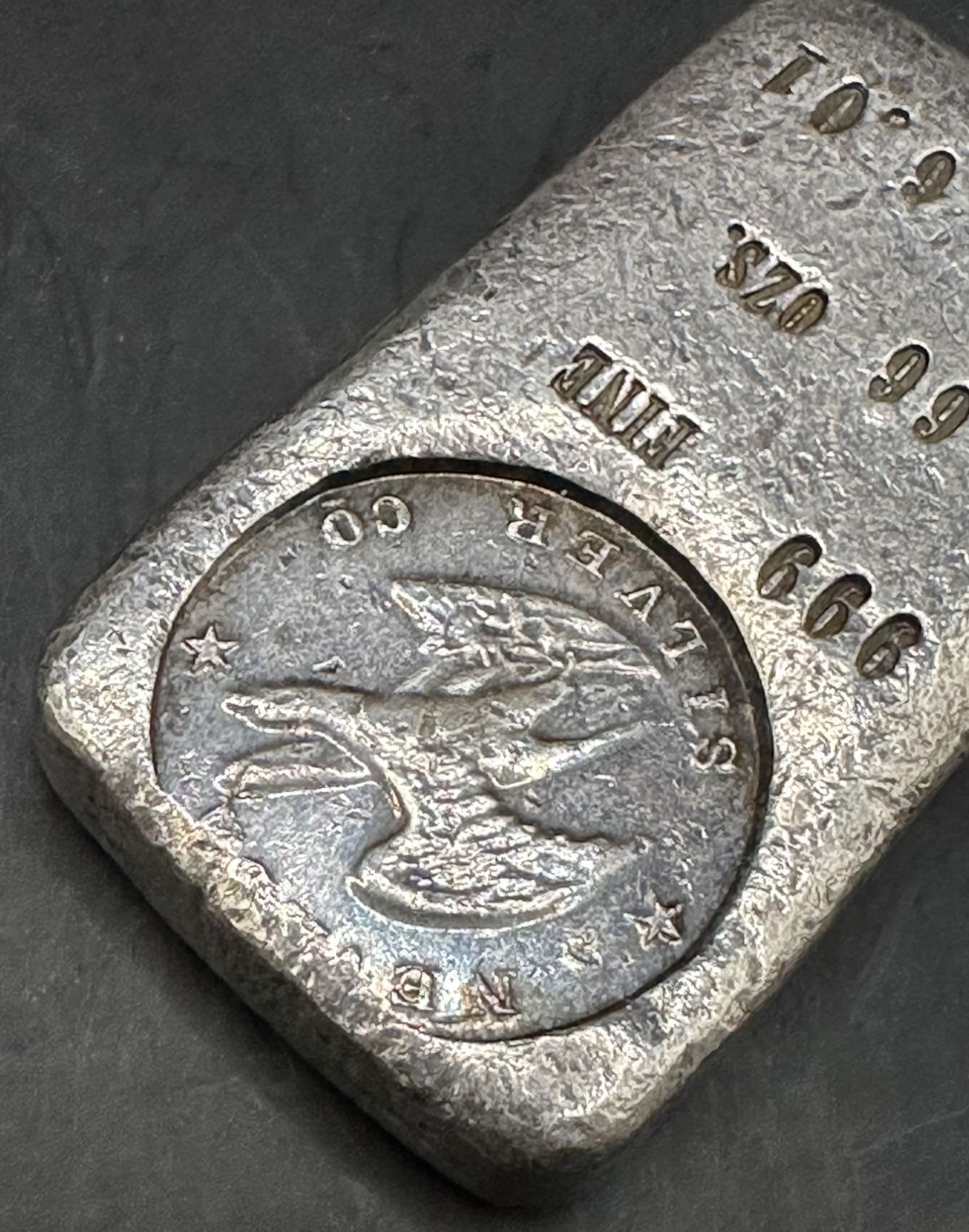 這件約翰福特和保羅富蘭克林寶藏中備受追捧的物品長期以來一直是個謎。據傳福特在 1955 年之前的某個時候生產了這些金錠,因此使它們成為幻想金錠。哈里·福爾曼 (Harry Foreman) 是福特的朋友,他是 50 年代中期費城的新硬幣經銷商,參與了這些金錠模具的製作。根據《托諾帕時報富礦》報道,富蘭克林於 1955 年在內華達州托諾帕的一個保險箱中發現了一批內華達白銀公司金錠。富蘭克林被從鳳凰城派往托諾帕去獲取這些金錠。該錠重 4.66 盎司,並刻有價值 6.01 美元的郵票。儘管這些金錠的真正來源仍然懸而未決,但這可以說是富蘭克林寶藏中最想要的金錠之一。